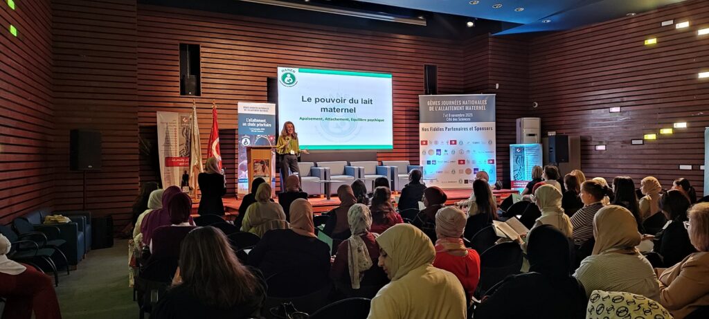 Zaha Marrakchi, professeure en médecine et cheffe du service de néonatologie de l’Hôpital Charles Nicolle à Tunis, a souligné dans son allocution d’ouverture le slogan central de l’événement : « L’allaitement maternel, un choix prioritaire ». Elle a mis en exergue la dimension écologique de l’allaitement : « Cette année, on a choisi le slogan car à l’échelle mondiale, les slogans ont englobé une dimension environnementale car l’allaitement maternel provoque zéro carbone, zéro transport, zéro emballages… Il s’agit donc de l’ami de l’environnement tout en étant une nutrition saine qui rentre dans le cadre du développement durable et cette pratique représente l’amie de l’humanité, de l’environnement et du monde ! ».